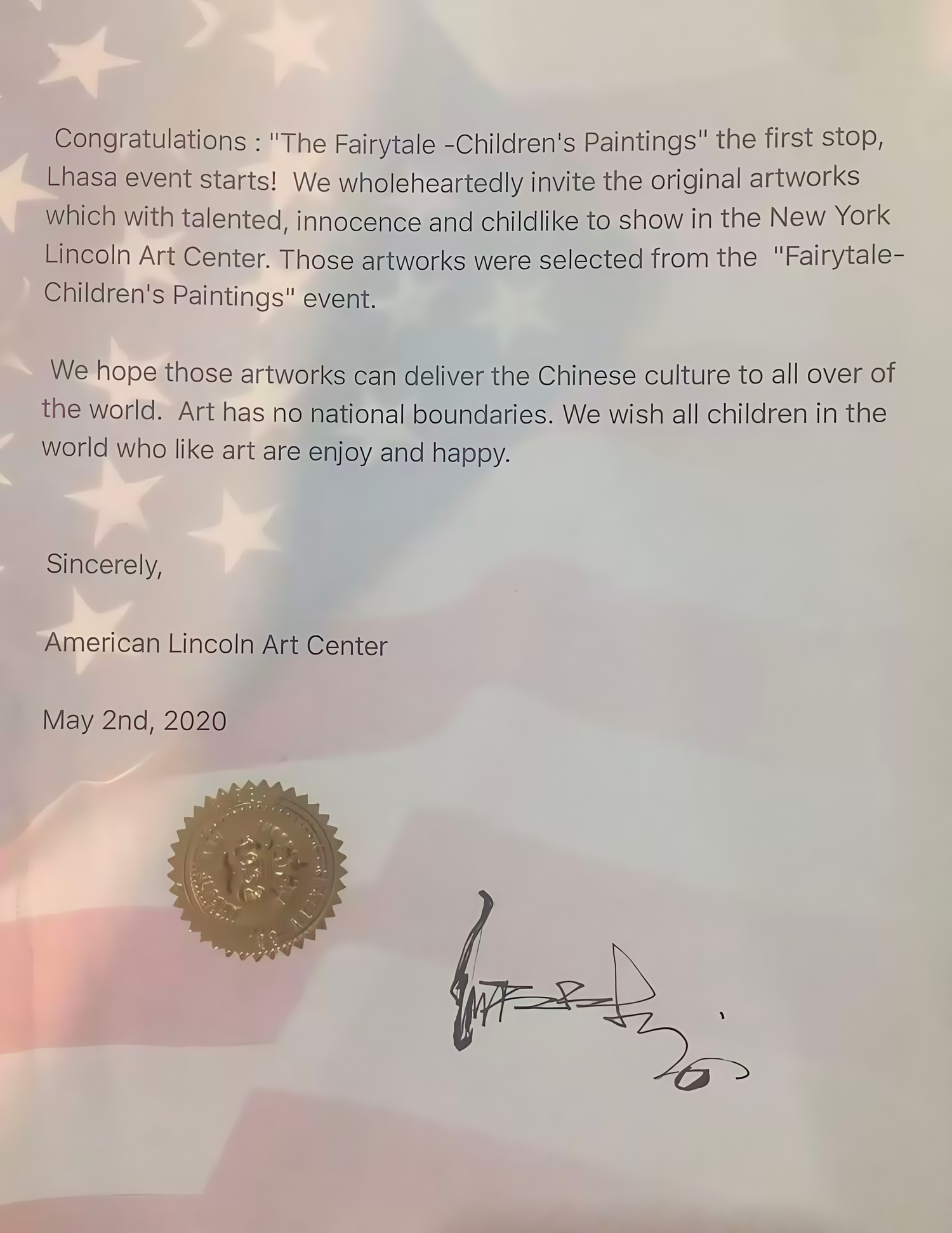 In 2020, Liu Xiaoning participated in the “Fairytale - Children’s Paintings” international art program at Lincoln Art Center, supporting cultural exchange between China and the U.S.