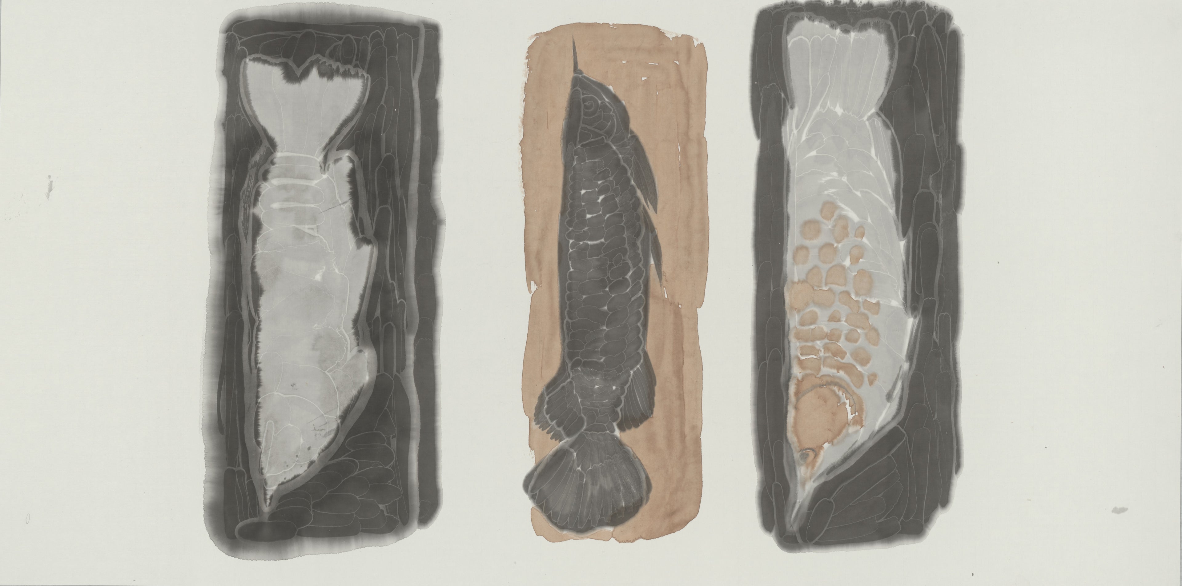 During his residency, He Jun deepened his exploration of ink as a material, focusing particularly on his distinctive technique of blending tea with ink.