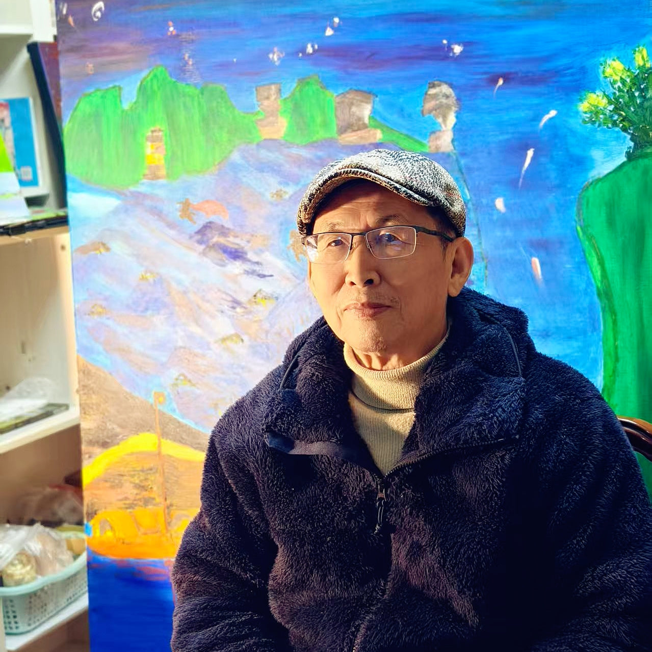 At the age of sixty-five, a vivid and unforgettable dream led him to begin painting. The intensity and beauty of that dream compelled him to pick up a brush, starting with spontaneous marks on Xuan paper and gradually developing a sustained and disciplined artistic practice. In his early years of painting, he focused on realism through studio work and plein-air studies, while exploring a wide range of media including traditional gongbi painting, murals, Japanese ukiyo-e, watercolor, mineral pigments, oil pastels, acrylic, and oil painting.