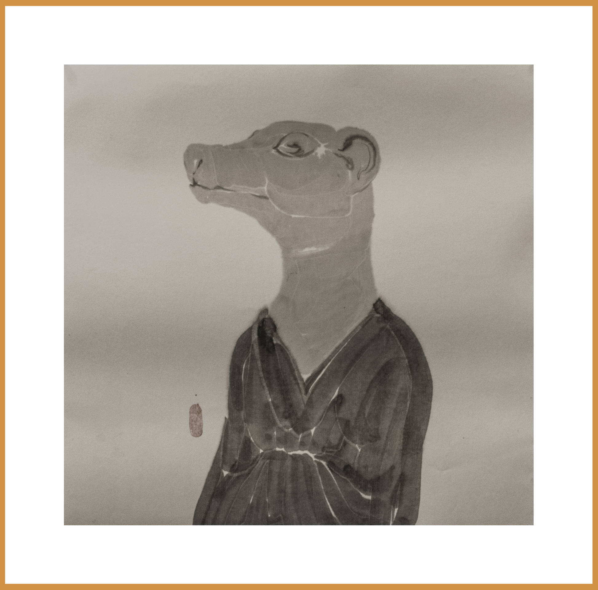 With solid ink painting skills and remarkable precision, He Jun transforms animal figures into symbolic carriers of inner spirit. The texture of thick Xuan paper gives the image both softness and weight, creating a calm, profound, and powerful atmosphere. His controlled and restrained brushwork reflects a high level of artistic and conceptual maturity.