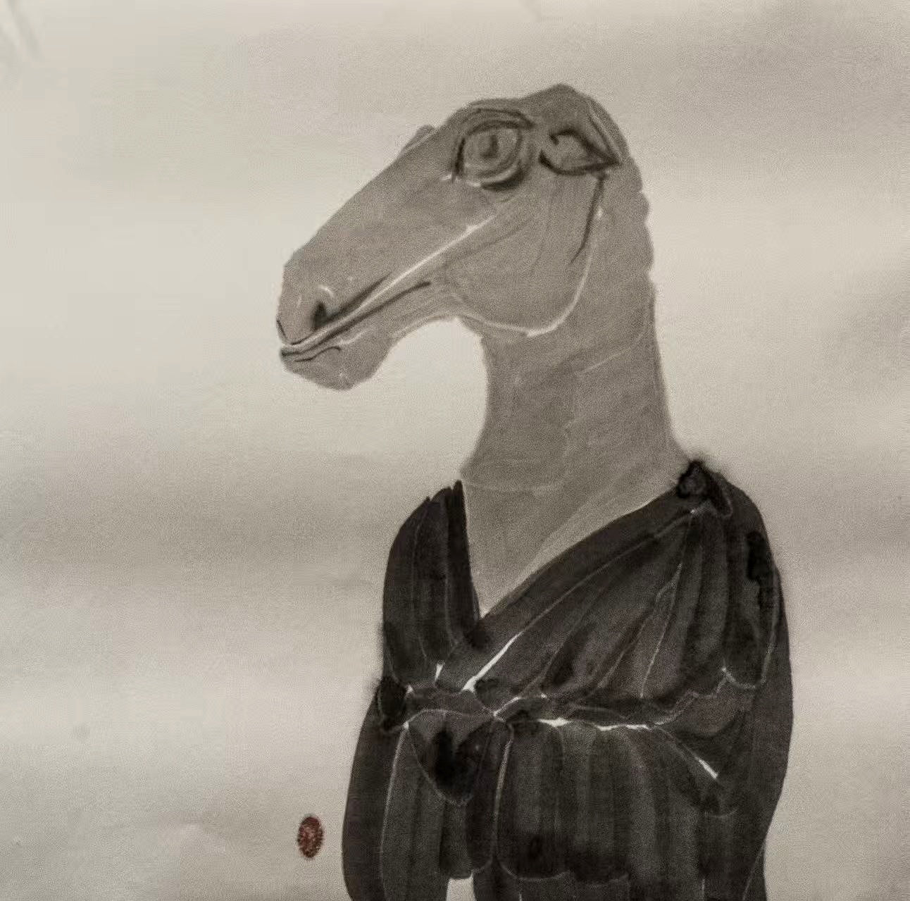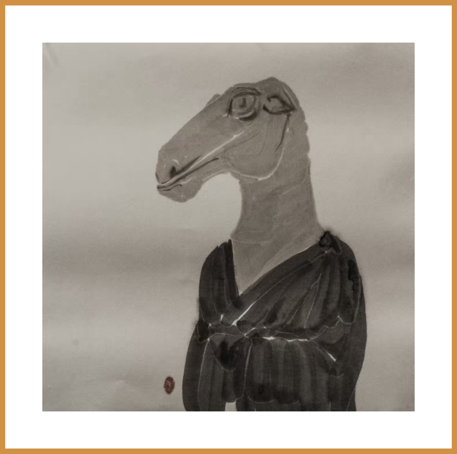 With solid ink painting skills and remarkable precision, He Jun transforms animal figures into symbolic carriers of inner spirit. The texture of thick Xuan paper gives the image both softness and weight, creating a calm, profound, and powerful atmosphere. His controlled and restrained brushwork reflects a high level of artistic and conceptual maturity.